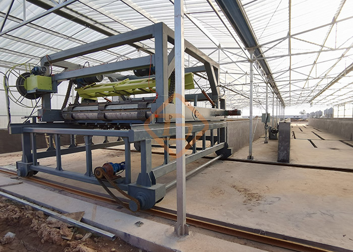 鏈板式翻堆機(jī)適用于畜禽糞便、污泥垃圾、秸稈等有機(jī)固體廢棄物的槽式好氧堆肥。該機(jī)的行走系統(tǒng)采用變頻調(diào)速、對不同物料的適應(yīng)性較好且運(yùn)行平穩(wěn)、翻堆效率高、能進(jìn)行深槽作業(yè)等優(yōu)點(diǎn),有效縮短發(fā)酵周期,提高生產(chǎn)效率及產(chǎn)品質(zhì)量。采用變頻調(diào)速速行走系統(tǒng),能很好適應(yīng)工作負(fù)荷的變化。可根據(jù)物料阻力情況,靈活調(diào)節(jié)行走速度,使設(shè)備有更強(qiáng)的適應(yīng)性和靈活性。可選配移行車,實(shí)現(xiàn)多槽設(shè)備工用,在設(shè)備的能力允許條件下,只需增建發(fā)酵槽,即可擴(kuò)大生產(chǎn)規(guī)模,提高了設(shè)備使用價值。