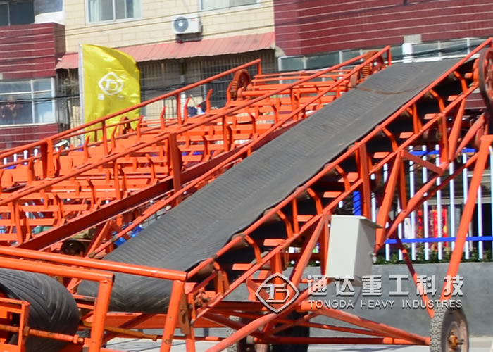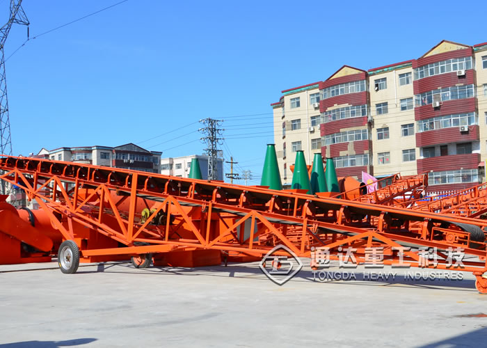 移動皮帶輸送機是一種工效高,使用,機動性好的連續輸送裝卸設備。主要用于裝卸地點經常變更動的場所,如:港口、碼頭、車站、煤場、倉庫、建筑工地、沙石料場、農場等,用來短途運輸及裝卸散料或單件重量100公斤以下的成件物品