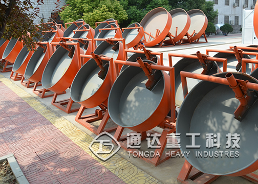 生料粉通過預(yù)加水?dāng)嚢杈鶆颍斎氡P內(nèi),隨著盤的轉(zhuǎn)動,料在盤體內(nèi)通過滾動逐步形成球狀,達(dá)到預(yù)定的直徑后排出盤外,再輸送到下一道工序。